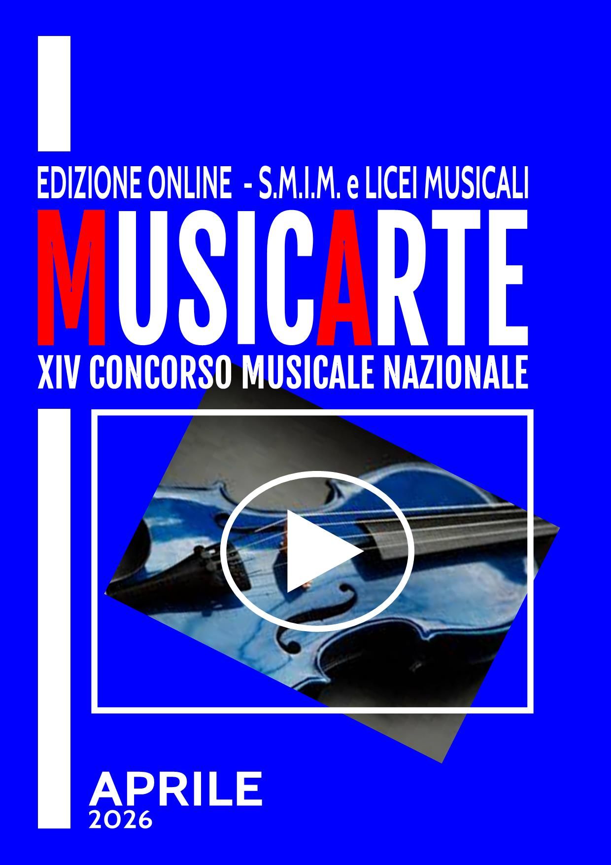 Art. 1: L’Associazione Arte & Fantasia, in collaborazione con il Comune di Ozegna (TO) organizza la quattordicesima edizione (settima online) del Concorso Nazionale Musicale “MusicArte” - Sezione S.M.I.M. e Licei Musicali con lo scopo di incoraggiare ed incentivare giovani talenti e promuovere lo studio della musica.
